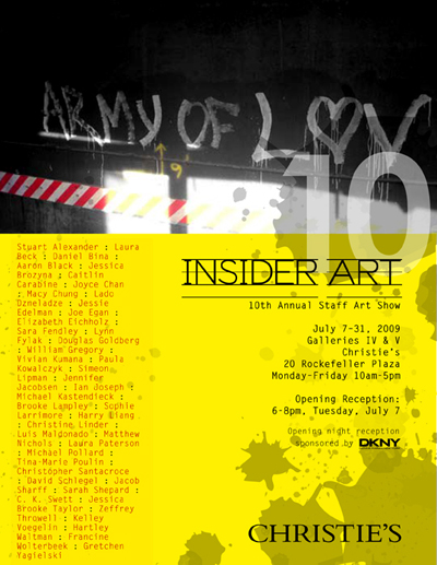 EXHIBIT - "Insider Art, 10th Annual Staff Art Show," Christie's, New York, NY, July 7 - 30, 2009